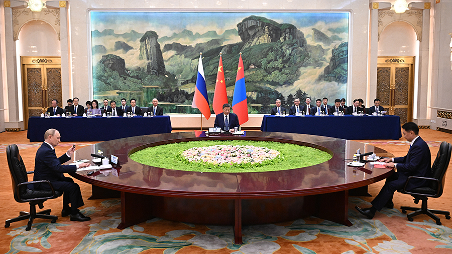 Торгово-экономическое, технологическое и культурное сотрудничество России, Китая и Монголии будет углубляться под руководством глав трех государств. Об этом заявил лидер Китая Си Цзиньпин во вторник, 2 сентября, в ходе трехсторонней встречи с президентом России Владимиром Путиным и главой Монголии Ухнаагийном Хурэлсухом в Пекине.