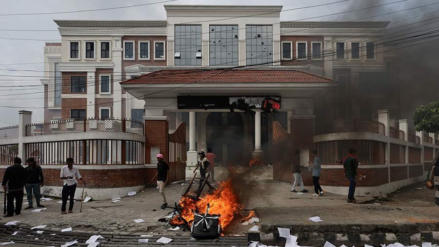 Уточняется, что протестующие подожгли офис главы государства в Катманду. В настоящее время президенту обеспечена безопасность.