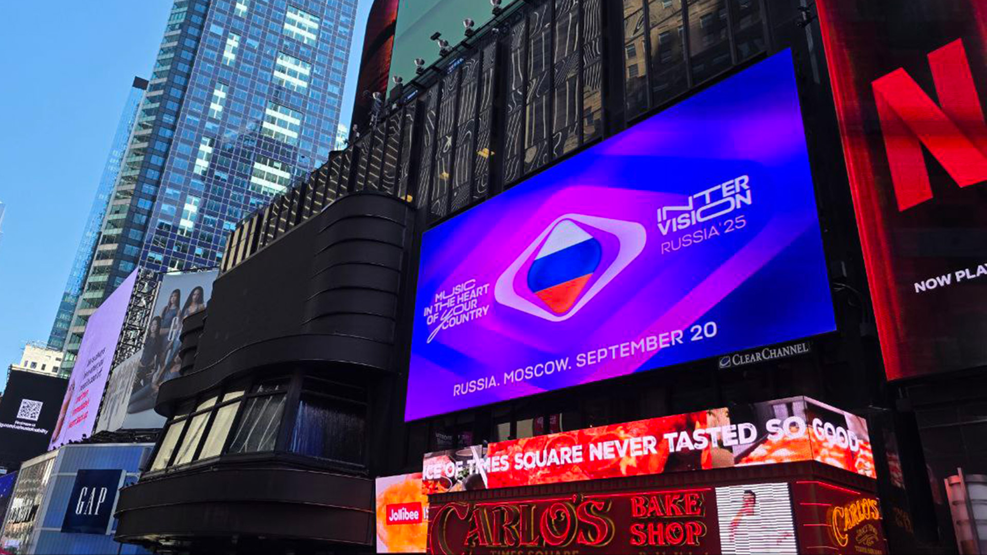 Появление на экране заставки «Интервидения» на фоне московских достопримечательностей стало неожиданностью для американцев. Не каждый день увидишь на огромном билборде слова «Россия, Москва». «Известия» пообщались с первыми зрителями на площади Таймс-сквер.