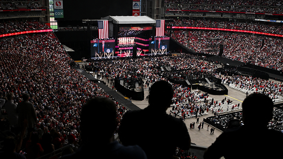 После начала церемонии трибуны на стадионе заполнили люди в одежде в цветах американского флага. На многих пришедших были красные кепки MAGA (лозунг «Сделаем Америку снова великой»), ставшие современным символом Республиканской партии США.