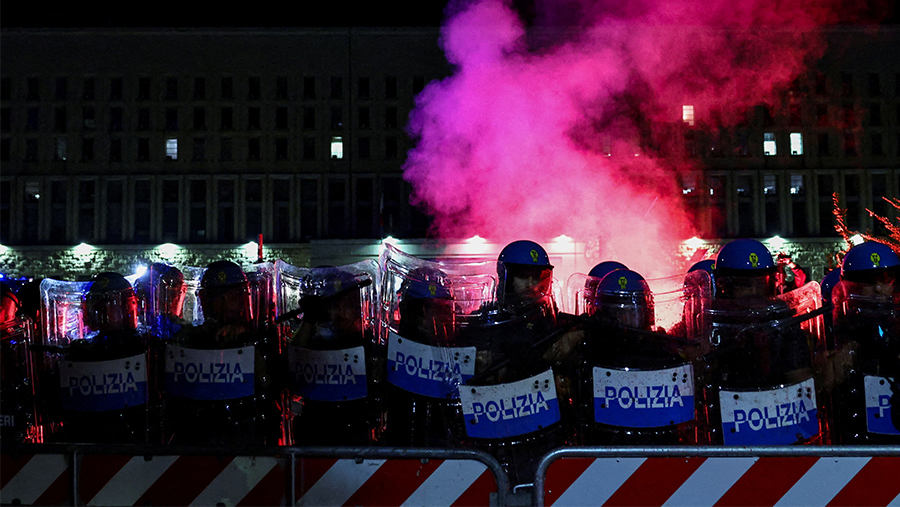 Заполнявшие центральную площадь города итальянцы держали в руках национальные флаги своего государства и баннеры, на которых были призывы к отставке действующей главы Еврокомиссии (ЕК) Урсулы фон дер Ляйен. Уточнялось, что наряду с флагами Италии замечен и российский триколор. Люди, передвигавшиеся по заранее перекрытым улицам, выкрикивали «Урсула, вон!».