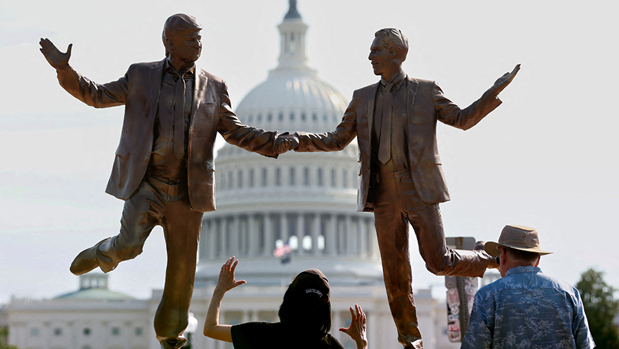 В США вернули на Капитолийский холм статую держащихся за руки Трампа и Эпштейна