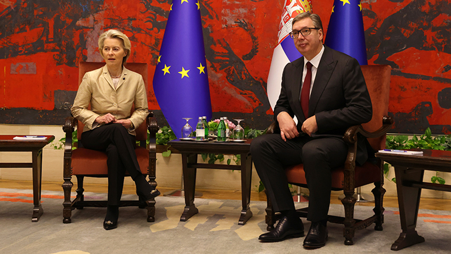 Фон дер Ляйен также назвала процесс вступления Сербии в ЕС долгим и требующим усилий, однако поблагодарила Белград за соответствие на 61% внешней политике Евросоюза. Тем не менее, по ее словам, для интеграции в союз Сербия должна делать больше шагов.