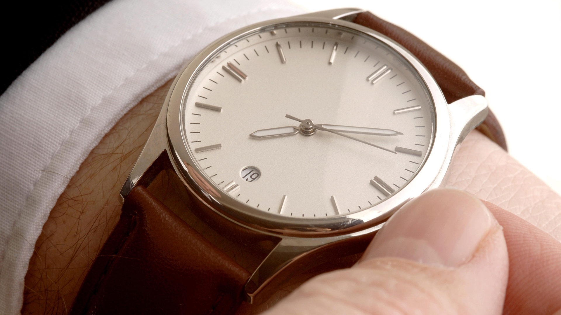 Для запястья окружностью от 15 до 18 см подходят часы со средним диаметром корпуса от 38 до 42 мм. Если запястье больше 19 см, стоит присмотреться к моделям диаметром 44–46 мм. По общему правилу правильно подобранный корпус закрывает две трети запястья, а ушки для крепления ремешка не выходят за его ширину.