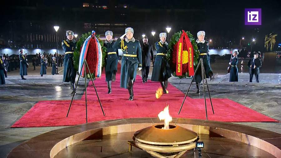 Владимир Путин и Садыр Жапаров возложили венки к мемориалу «Вечный огонь» на площади Победы в Бишкеке