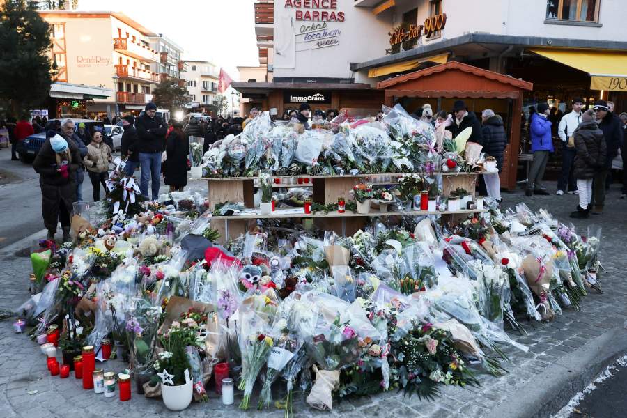 Импровизированный мемориал в память о жертвах пожара, произошедшего в новогоднюю ночь на швейцарском горнолыжном курорте Кран-Монтана
