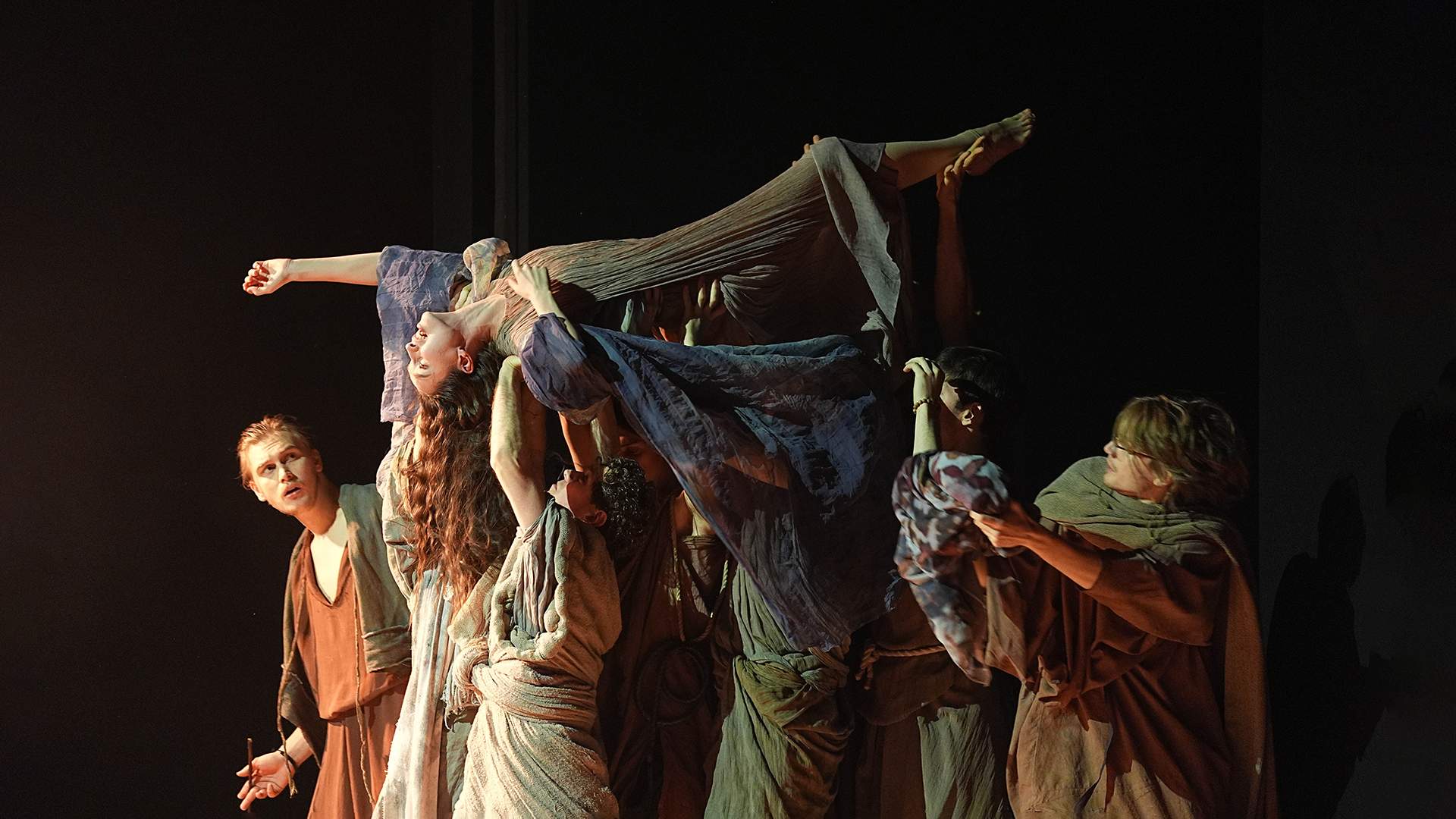 Их энергия, пластичность и ансамблевая слаженность не вызывают сомнений. Но при всей точности внешнего рисунка ощущается нехватка той самой жизненной боли, без которой история предательства и раскаяния остается скорее интеллектуальной схемой, чем прожитой трагедией. Это не упрек, а констатация возраста и опыта. В этих ролях еще не до конца накоплен внутренний вес страдания. Зато отчетливо виден потенциал — желание работать с материалом, слышать партнера, держать форму притчи, не скатываясь в бытовую психологию.