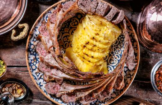 Филе оленины на гриле с мильфейем из кольраби и баттерната и соусом на основе красного вина — яркая и уверенная кульминация сета. Насыщенное самыми разными вкусами блюдо дополнено изящной котлеткой-конфи из бараньей лопатки, которую подают на тонкой бриоши.
