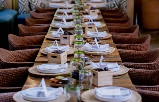 Всё это сочетается самым причудливым образом, но выстраивается в стройное и гармоничное целое. Раковые шейки с визигой уместно дополнены легкой медовухой, осетрина — тартаром из соленых груздей, гусь — моченым крыжовником и каперсами из одуванчиков, варенец — соленым чипсом из топинамбура, а сморчки — муссом из горького шоколада.
