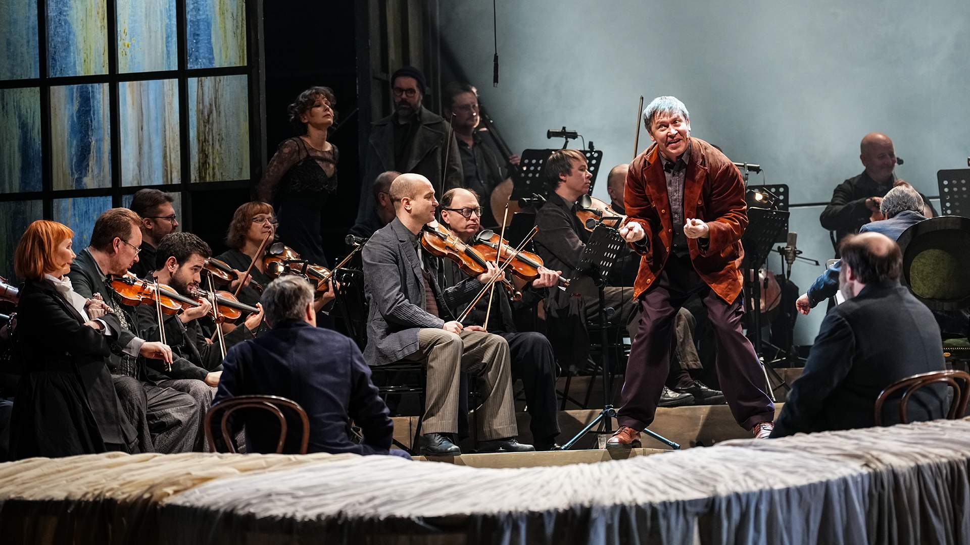 Самостоятельным участником спектакля оказывается камерный ансамбль «Солисты Москвы» под управлением Юрия Башмета. Музыкантов, которых представляют не иначе как «еврейский оркестр», якобы наняли Лебедевы для званого обеда. Но нанять-то наняли, а платить нечем. Между тем именно благодаря оркестру и музыке композитора Валерия Воронова, написанной специально для этого спектакля, выдуманный сюжет Агуреевой звучит как перемежающаяся симфония человеческих чувств: то лирическая, то зловещая, то бьющаяся в ритме неумолимого сердца, ищущего любовь.