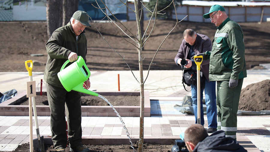 Отмечается, что белорусский лидер работал на площадке Национального исторического музея и парка Народного единства. Вместе с другими участниками субботника он высаживал деревья на прилегающей территории.