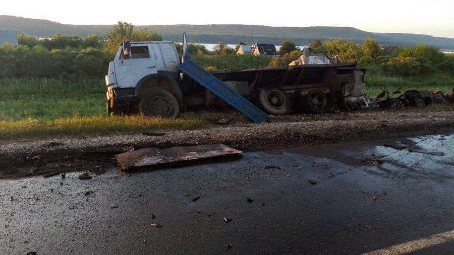 Трагедия произошла 2 июля, около 00:40 мск в Заинском районе. Автомобиль КамАЗ, который тащил на жесткой сцепке грузовой автомобиль МАН, столкнулся с пассажирским автобусом. В результате чего автобус опрокинулся и загорелся. В автобусе находились 29 человек, 14 погибли и еще 15 пострадали. В больнице отметили, что трое пострадавших находятся в тяжелом состоянии в реанимации.