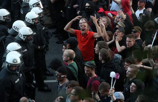 Демонстранты пытаются забраться на здание во время митинга