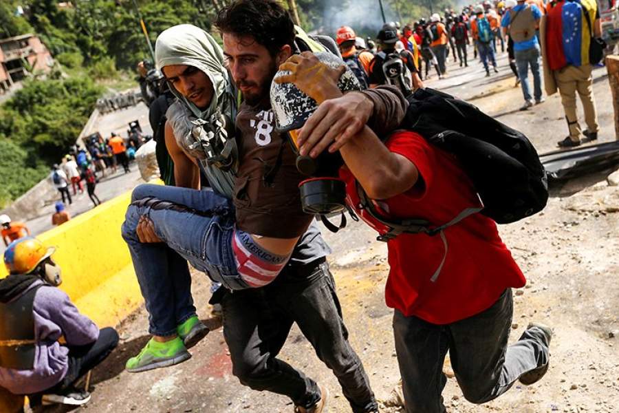 Всего с начала года число жертв массовых протестов приблизилось к сотне. На фото: один из демонстрантов, пострадавших в столкновении с полицией