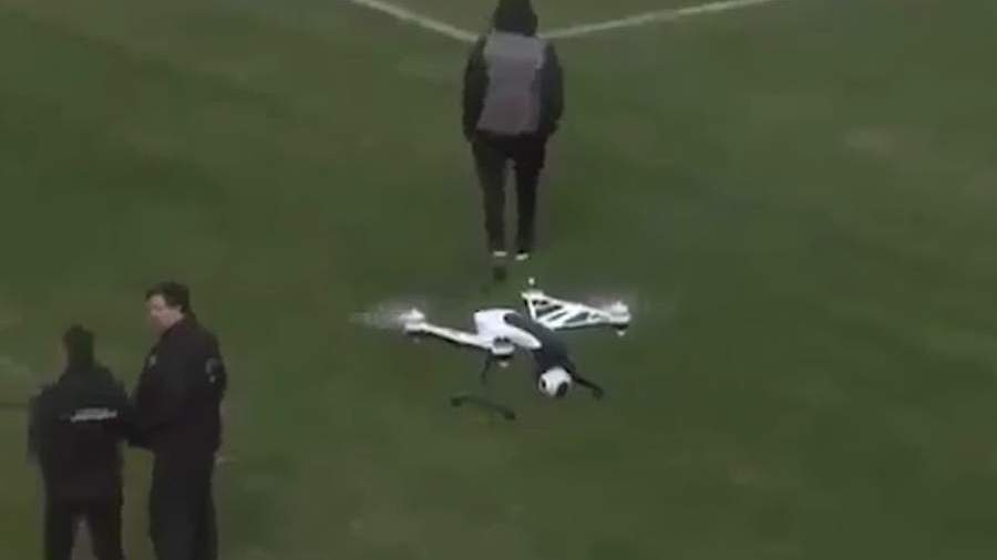 Болельщик сбил телевизионный дрон на футболе