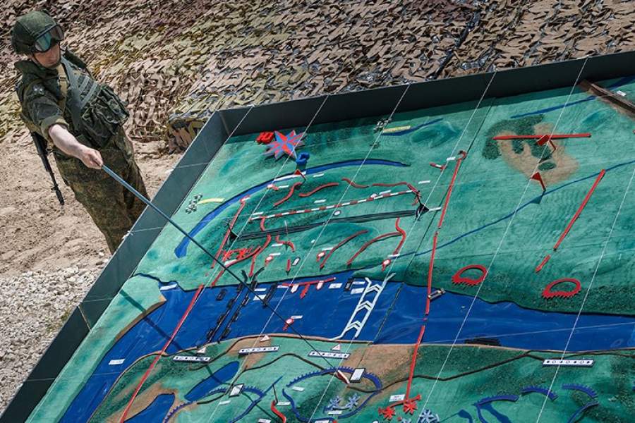 Офицер демонстрирует план операции по форсированию реки