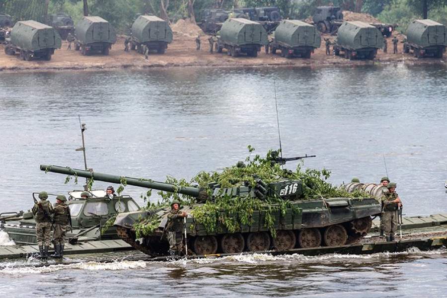 Танки Т-72Б1 двигаются на противоположный берег