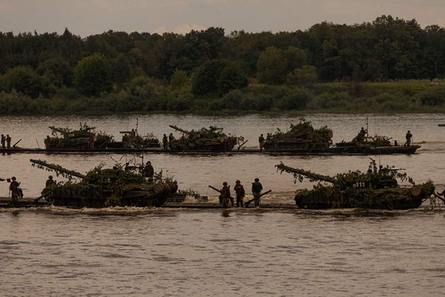 Преодоление водной преграды межвойсковой группой проинспектировал министр обороны РФ Сергей Шойгу