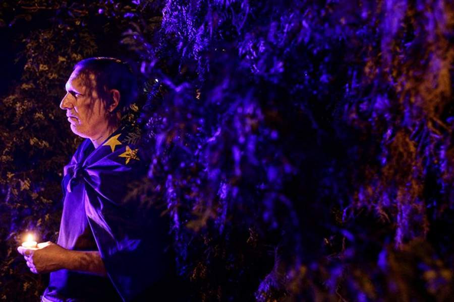 Один из митингующих держит свечу во время протеста против верховного судебного законодательства перед Верховным судом в Варшаве