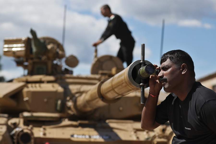 Участник команды из Индии перед началом репетиции. Индия будет участвовать в соревнованиях на своей технике — танках Т-90 «Бхишма»