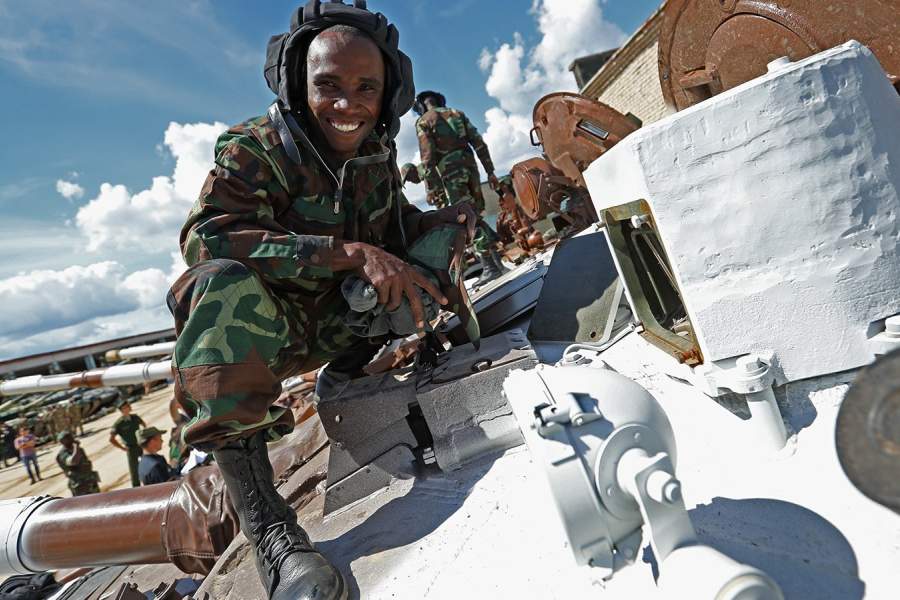 Танкист из Анголы перед началом репетиции