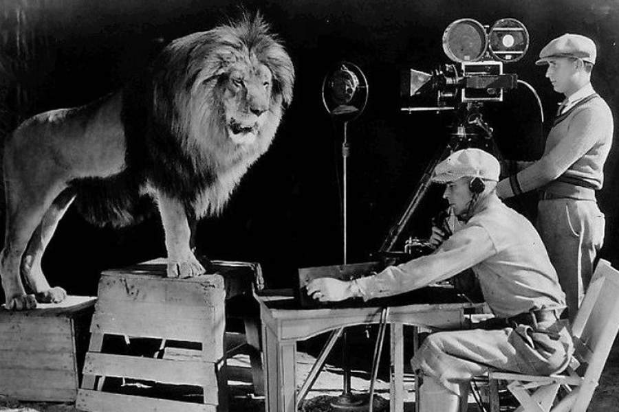 31 июля 1928 года на заставке первого звукового фильма киностудии Metro-Goldwyn-Mayer появился главный символ компании — рычащий лев. На фото: лев Джеки во время записи заставки для киностудии в 1928 году