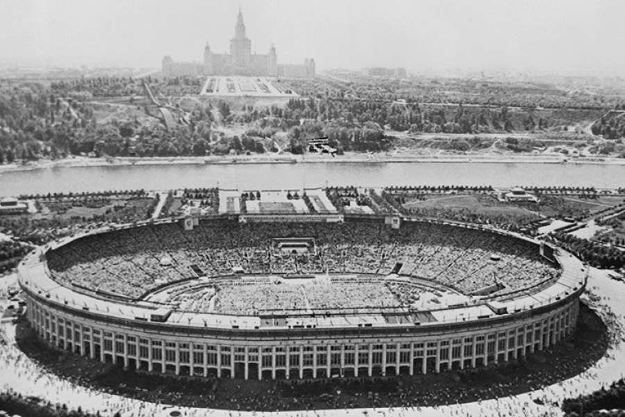 31 июля 1956 года состоялось торжественное открытие Большой спортивной арены Центрального стадиона им. В.И. Ленина, впоследствии ставшей частью олимпийского комплекса «Лужники». На фото: вид на арену в 1963 году