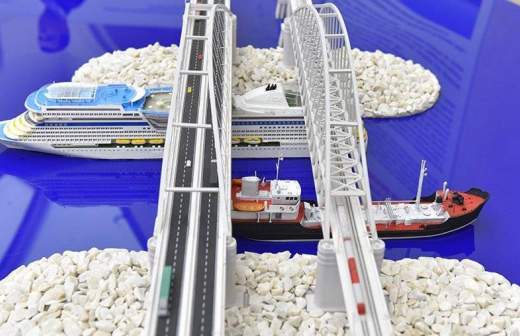 Строители уже полностью собрали железнодорожную арку весом в 6 тыс. т. Она обработана антикоррозийным покрытием и готова к установке на опоры моста.