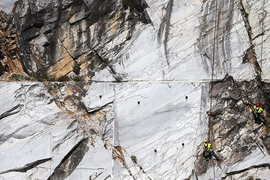 Рабочие изучают залежи мрамора в карьере на горе Альтиссимо