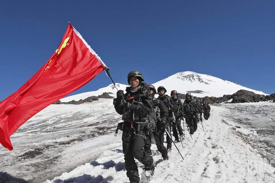 Военнослужащие высокогорных подразделений приняли участие во втором этапе всеармейского конкурса «Эльбрусское кольцо», который проходит в ущелье Терскол в рамках в рамках Армейских международных игр – 2017. На фото: представители команды армии Китая