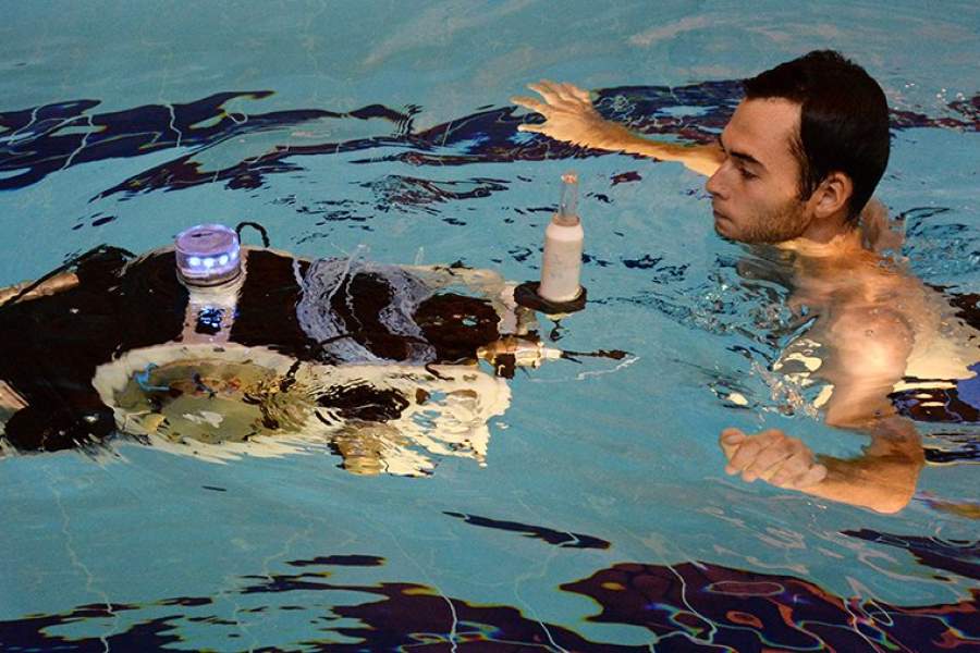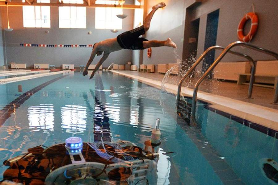 Демонстрация подводного робота в бассейне Дальневосточного федерального университета