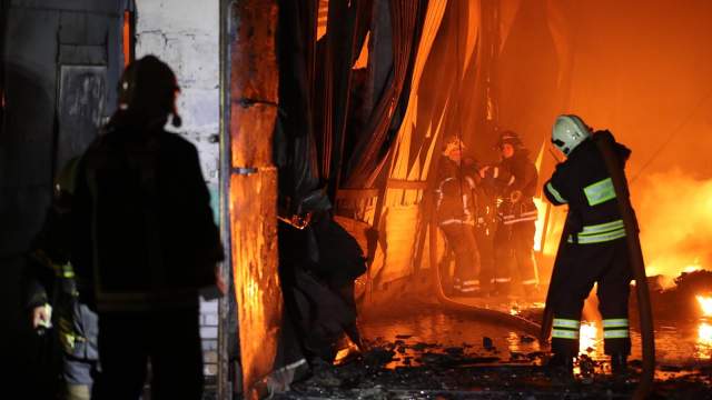 Денисов отметил, что в несущих конструкциях появились трещины. По его словам, пламя охватило товары народного потребления, в частности, автомобильную химию.