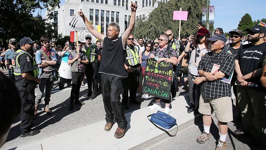 Митинг против правых радикалов состоялся в канадском Ванкувере. Протестовать к зданию городского совета вышли примерно 4 тыс. человек.