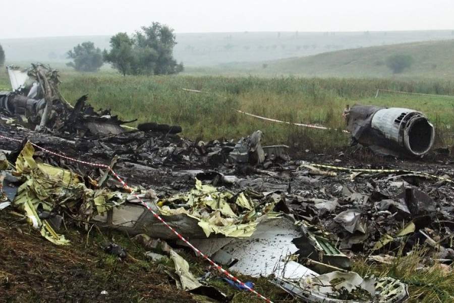 22 августа 2006 года в Донецкой области потерпел катастрофу самолет Ту-154, выполнявший пассажирский рейс из Анапы в Санкт-Петербург. В катастрофе погибли все находившиеся на борту 160 пассажиров и 10 членов экипажа. На фото: обломки самолета на месте крушения на следующий день после катастрофы