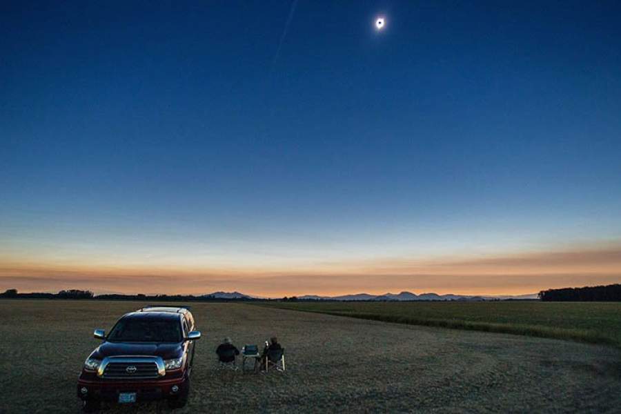 Наблюдатели затмения в поле к югу от Корваллиса, штат Орегон