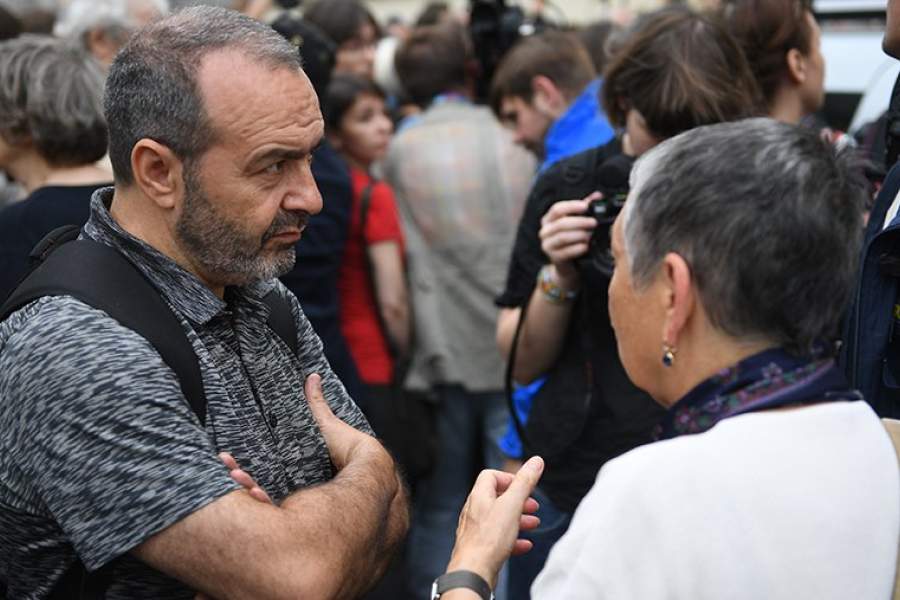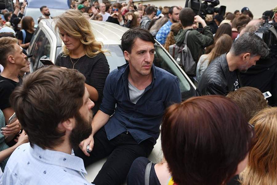 Акция в поддержку Кирилла Серебренникова, которая проходила у здания Басманного суда, собрала несколько сот человек. Среди них были известные журналисты, режиссеры, артисты. На фото: журналист Леонид Парфенов