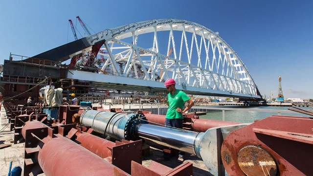 Строительство Крымского моста началось в феврале 2016 года. Стоимость проекта оценивается в 228 млрд рублей. Движение автомобилей по мосту начнется в декабре 2018 года, поездов — в декабре 2019 года.