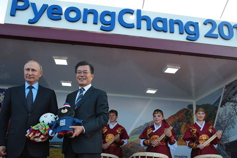 Владимир Путин и президент Республики Корея Мун Чжэ Ин во время посещения выставки «Улица Дальнего Востока»