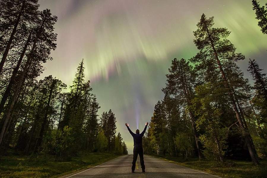 На фото: северное сияние около деревни Паллас в Лапландии