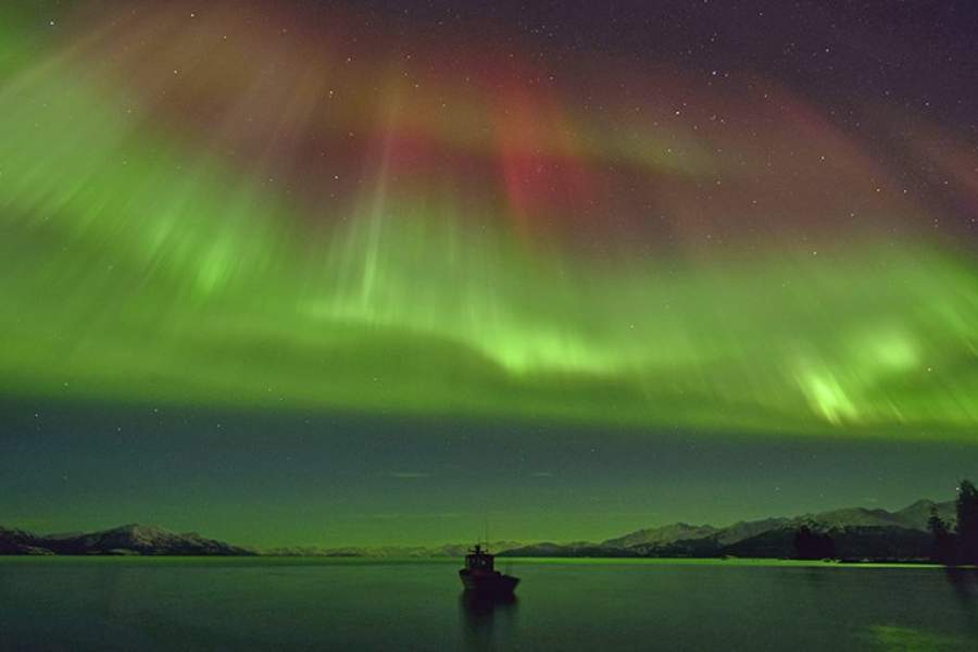 Весной и осенью полярное сияние возникает заметно чаще, чем зимой и летом. На фото: свечение атмосферы над заливом Принца Уильяма на Аляске