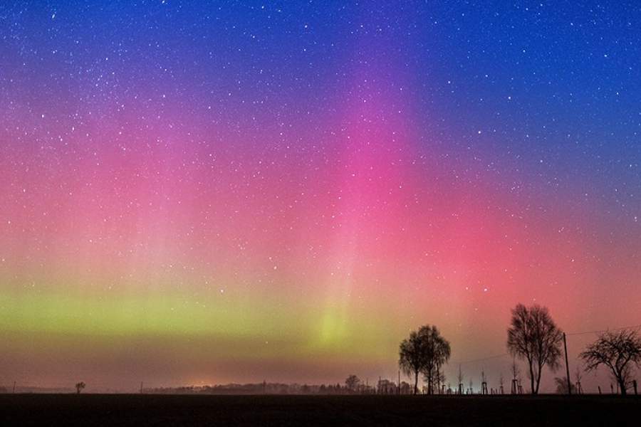 Свечение верхних слоев атмосферы возникает вследствие ее взаимодействия с заряженными частицами солнечного ветра. На фото: сияние над городом Литцен в Германии