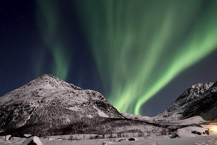 Северное сияние недалеко от города Тромсе в Норвегии