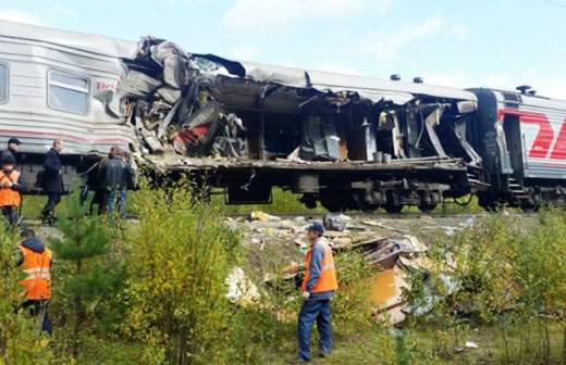 В ХМАО грузовик, гружённый песком, врезался в железнодорожный состав. Травмы получили 14 человек, трое из них — дети. Двое пострадавших — в крайне тяжелом состоянии. Несмотря на сильный удар, состав с рельсов не сошёл. Одна из версий: авария могла произойти из-за отказа тормозов у «КамАЗа». Водитель грузовика также госпитализирован. На место аварии направилась губернатор ХМАО Н.Комарова. Оснащенность переезда проверит транспортная прокуратура.
