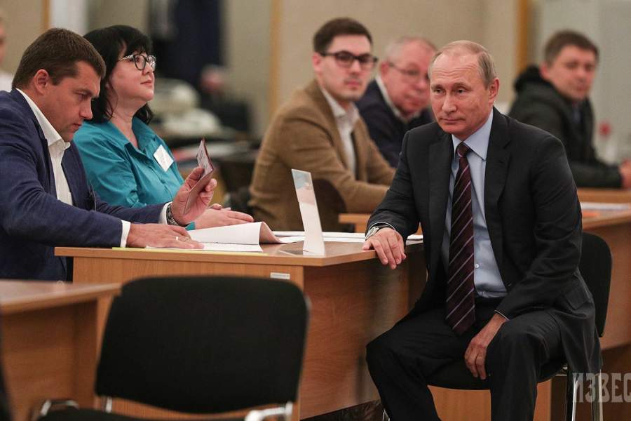 Владимир Путин на избирательном участке в Москве во время единого дня голосования, который состоялся 10 сентября