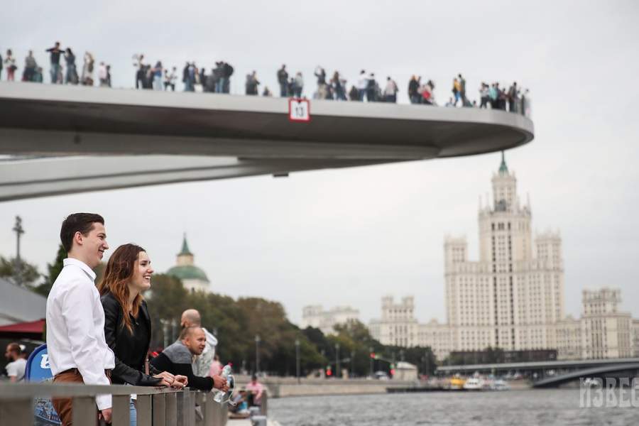 Первые посетители парка «Зарядье», открывшегося для широкой публики 11 сентября