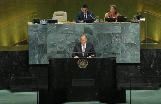 «НАТО стремится воссоздать климат холодной войны и отказывается претворять в жизнь торжественно провозглашенный в 90-е годы прошлого века принцип равной и неделимой безопасности на пространстве ОБСЕ», — сказал глава МИД РФ, выступая на 72-й сессии Генассамблеи ООН.