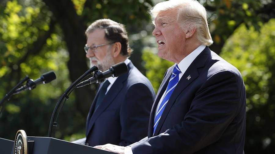 «Думаю, Испания –– это великая страна, она должна оставаться единой», –– такое мнение американский лидер озвучил в ходе встречи с премьер-министром Испании Мариано Рахоем.