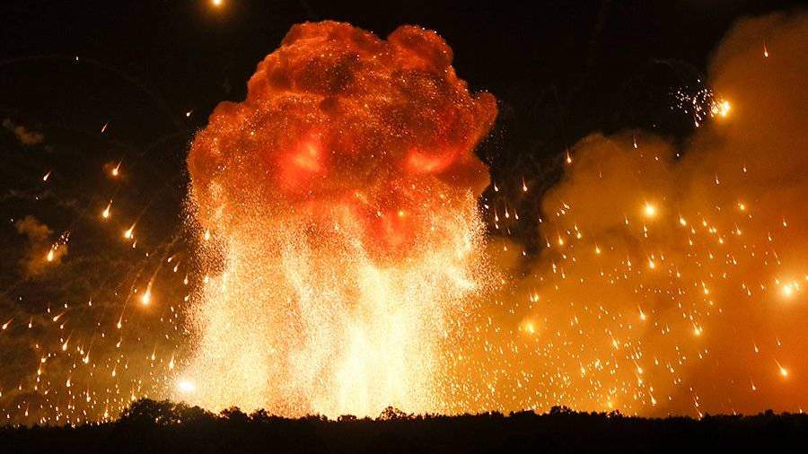 Пожар начался накануне вечером, на складах сдетонировали боеприпасы. По данным СМИ, там хранятся ракеты к системам залпового огня «Смерч», «Ураган» и «Град».