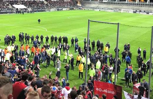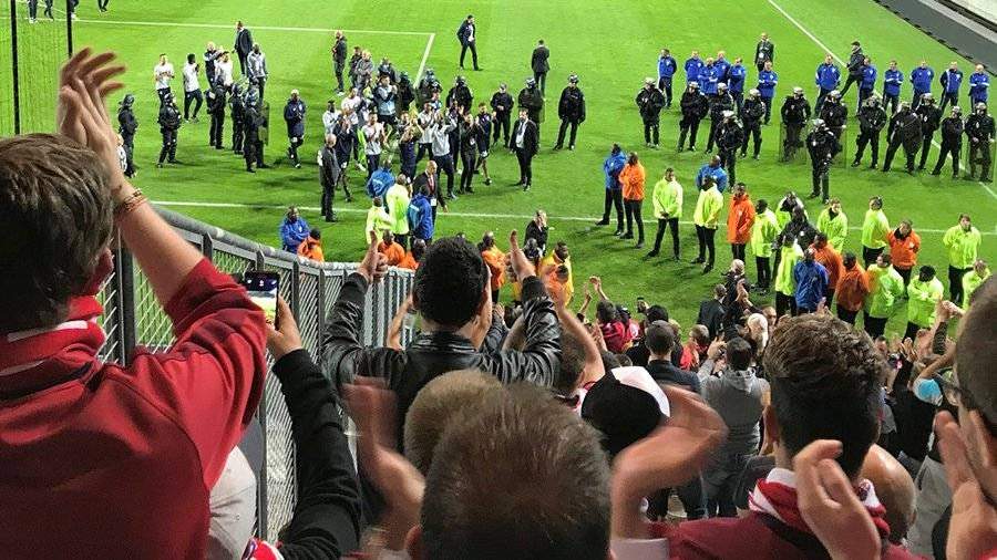 Напомним, что проходивший в субботу в Амьене матч был прерван после того, как болельщики гостей во время празднования гола упали с трибун на поле из-за рухнувшего заградительного барьера.