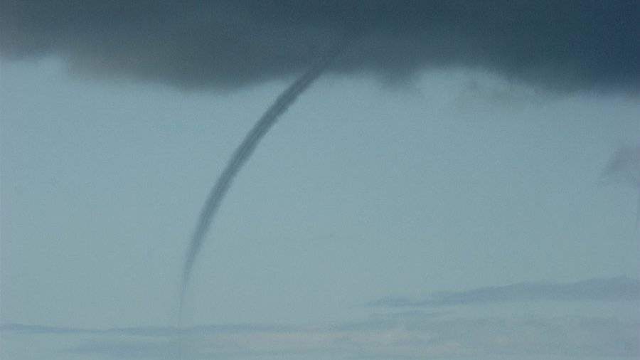 На видео видно, как в небе образовалось воронкообразное облако, которое извивается и практически достигает земли.